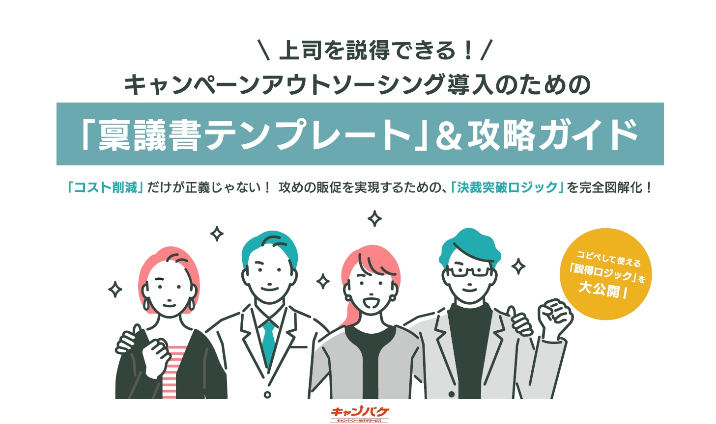 キャンペーン外注の稟議を通すための攻略ガイドです 。攻略ロジック(見えないコストの可視化やリスク回避)を解説 。コピペして使える稟議書サンプルも収録!